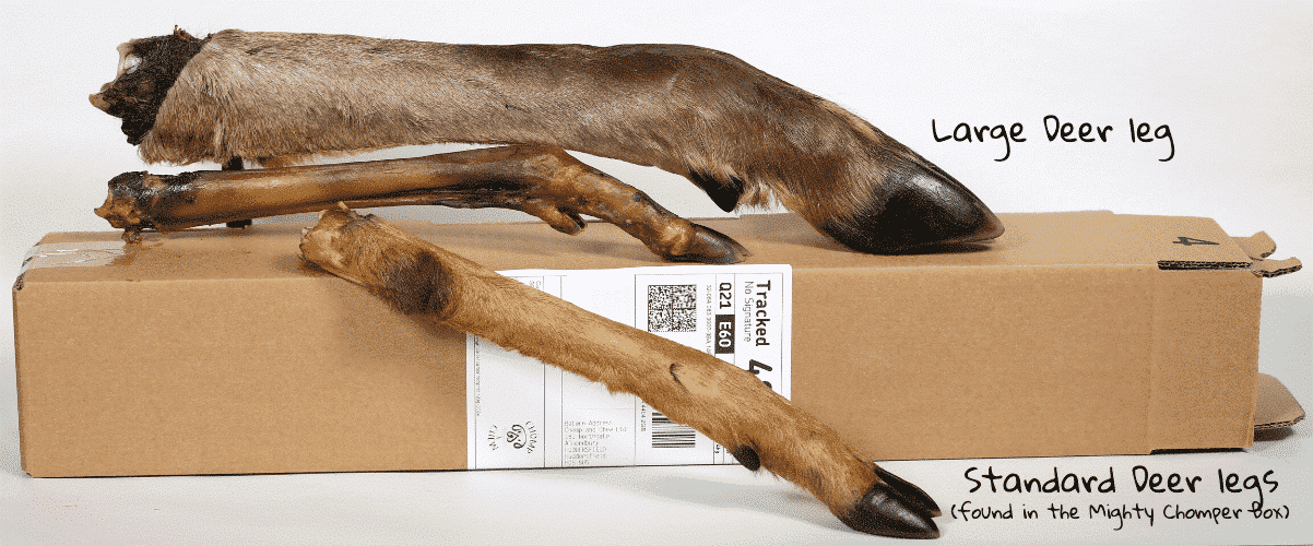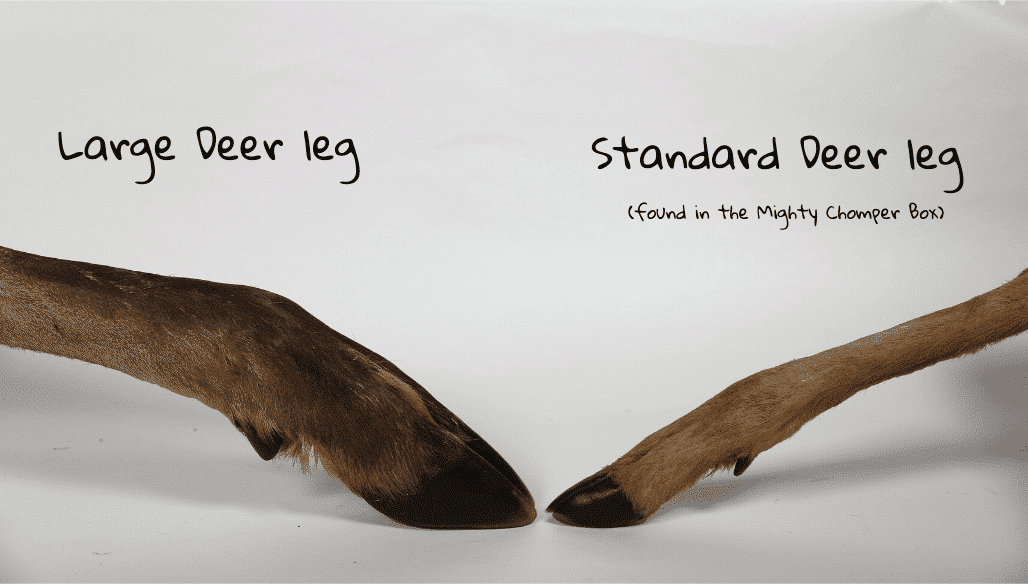 Note: If your dogs has never had a deer leg before, it might take your dog a while to get into it, which is totally acceptable. Please just keep offering to your dog and/or leave it accessible whilst you are around and your dog will eventually make a start on it.