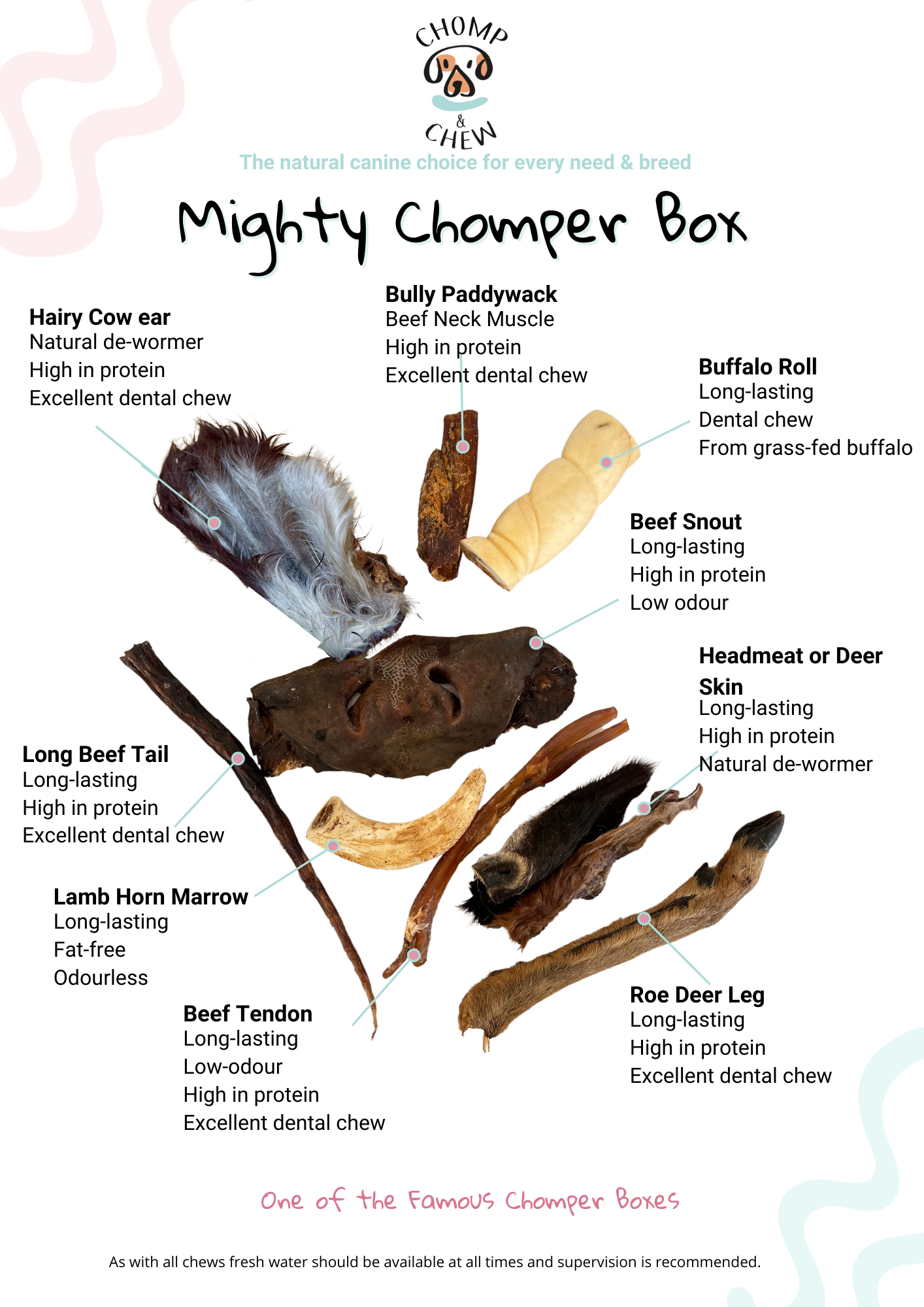 If you'd prefer a box filled with different chews, check out our Power Chomper Box®, which also has some excellent long-lasting options.