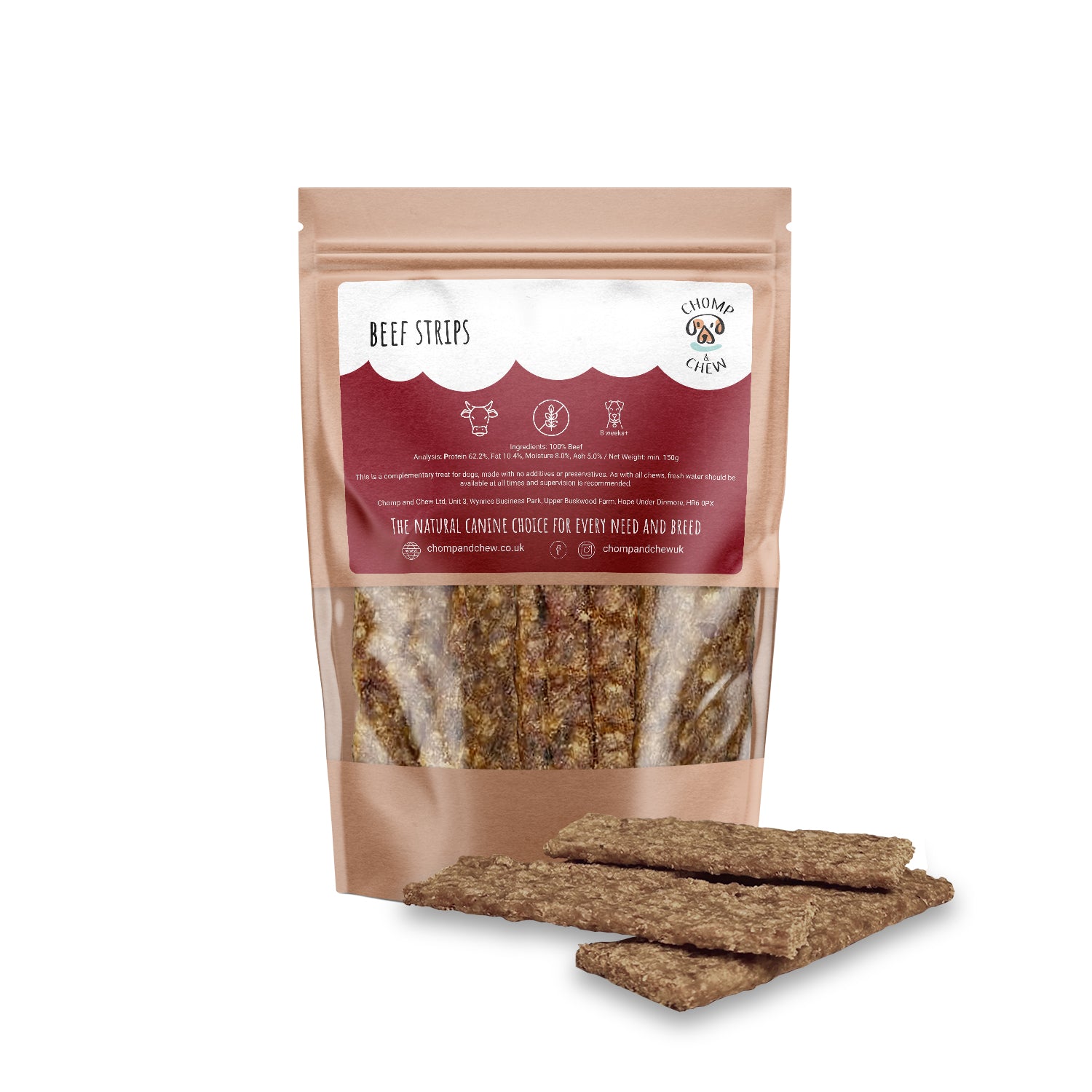 Our Pure Meat Strips make excellent dog chews, which can be used for pure enjoyment as they are or broken up for training purposes. They are ideal for younger dogs or woofers who are not keen on having to work hard to finish a chew!