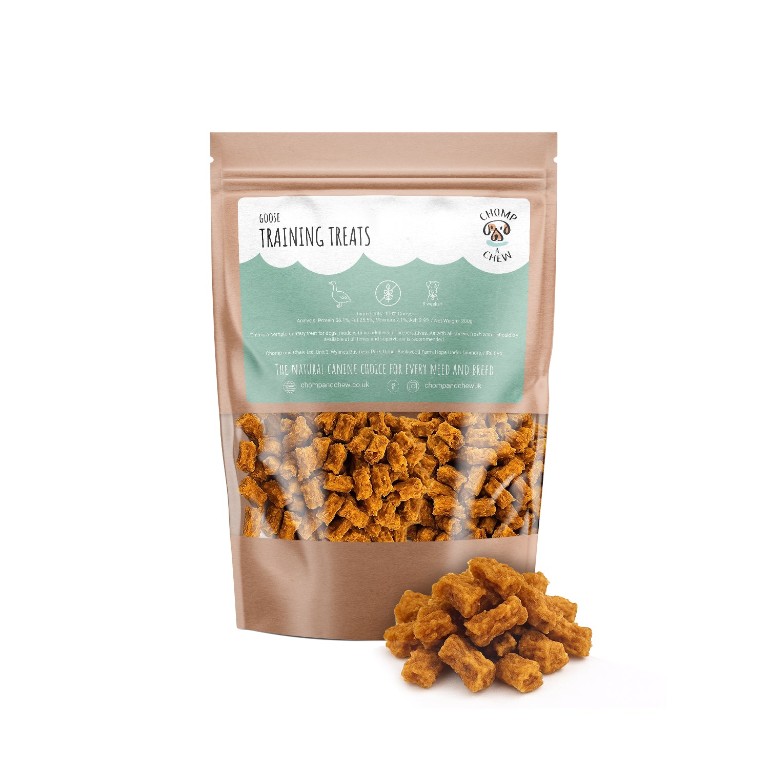 Our Goose Training Treats are a great choice for training dogs of any age, but especially suited for young puppies as they are 100% pure meat, odourless, non-greasy and the perfect size for little pups. All dogs find them totally irresistible therefore they are a brilliant choice for teaching any commands to dogs of all ages. They are 100% meat, nothing has been added or taken away.