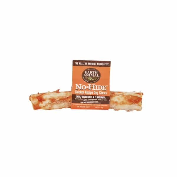 The Earth Animal No-Hide Chews (Chicken) are rolled by hand without any synthetic chemicals, bleaches, formaldehydes, or additives. This way, you know each and every one is made with gentle care, and that you can be happy knowing your pet is truly getting a nutritious, delicious, long-lasting No-Hide Nirvana experience.