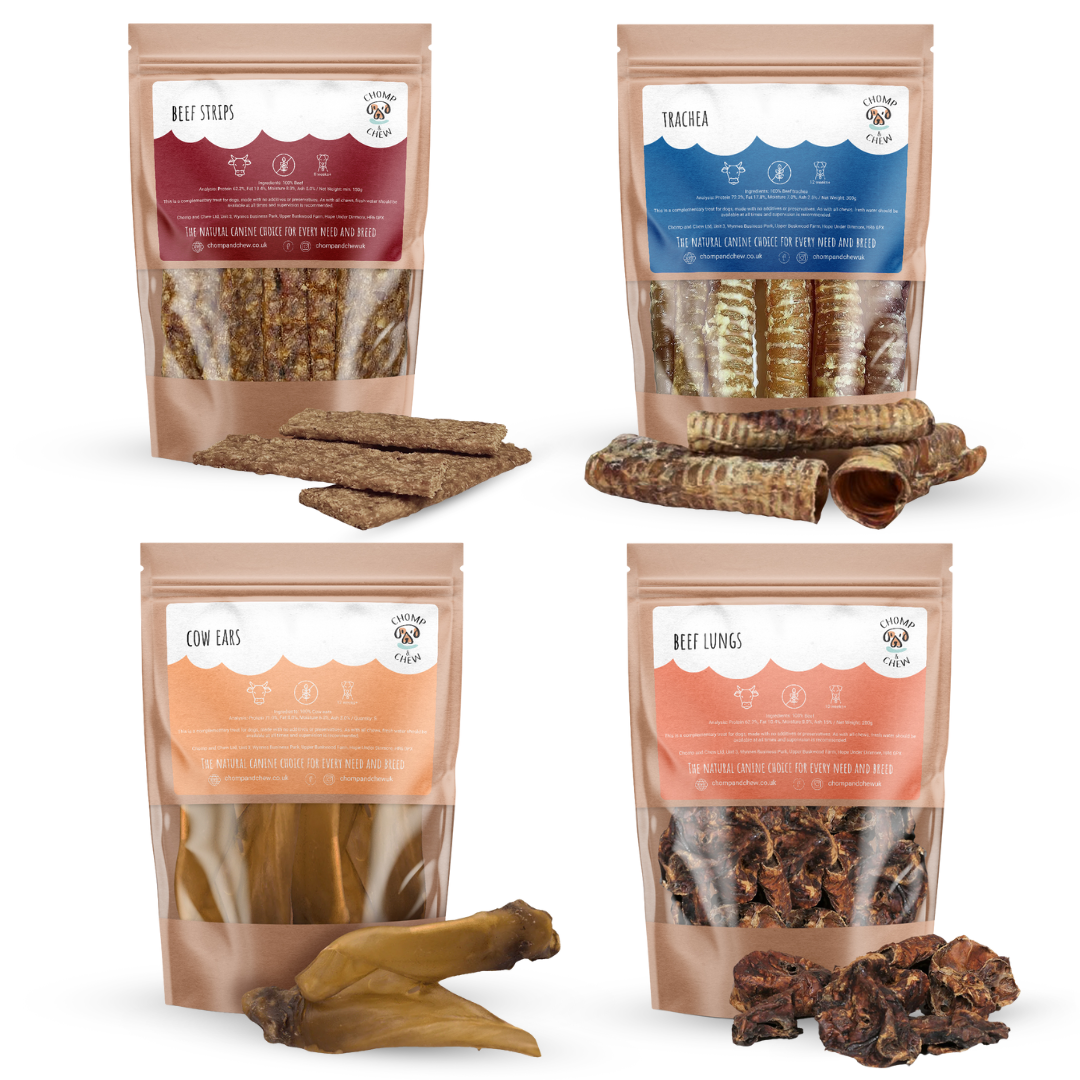 This bundle is suitable for dogs aged 12 weeks+ (Beef Pure Meat Strips & Beef Lung can be fed from 10 weeks, and Trachea & Cow Ears from 12 weeks).